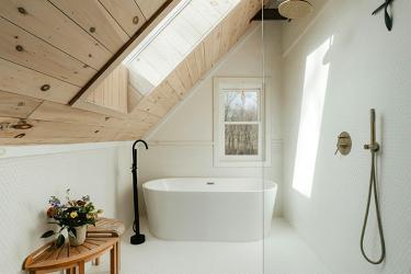 While modern looking freestanding baths are having their moment right now, freestanding tubs have always been a staple in American bathrooms. They combine timeless elegance with modern luxury, making them a centerpiece in both classic and contemporary bathrooms. Their sculptural design and flexibility in placement add a sense of spaciousness and style. As homeowners continue to prioritize wellness and aesthetics, freestanding baths offer both a functional and indulgent bathing experience that stands the test of time. Kerry Staley, Hamtil Construction LLC.