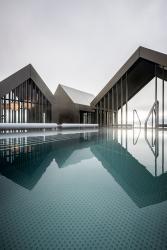 When noa* Network of Architecture designed the original cantilevered swimming pool in 2016, the studio envisioned it as a rock stranded between earth and sky. In 2019 a new assignment was presented to the architects: to design a dedicated wellbeing extension to suit it. It was not an easy task for a building that had already found its symbol in the original swimming pool, yet this served as inspiration for the new project.