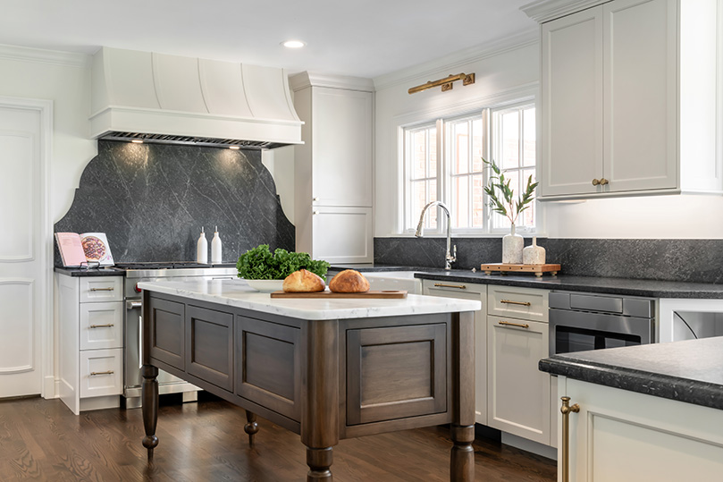 Julie confirms it was easy to work with Jessica, who never got frustrated when they pivoted to incorporate additional ideas. “For example, I was very specific on how I wanted edges to look on the large piece of soapstone behind the gas range. Many renderings were requested to get it just right, and Jessica was just as happy as we were with the outcome,” she adds.