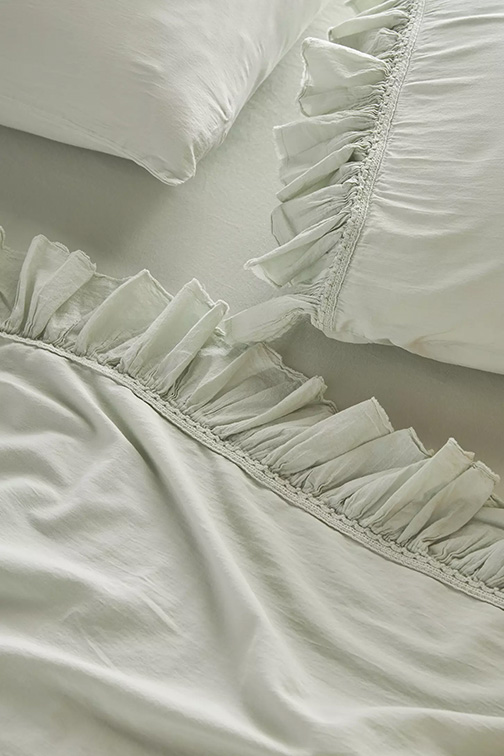 1. Organic cotton spa sateen ruffled sheet set, available at Anthropologie.