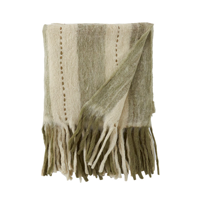 5. Grey and cream handloom woven striped blanket with fringe, available at Blue Dahlia.