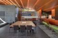 The “Greatest Room” features an open concept kitchen and dining room, sitting space and full-service bar while still allotting ample space, living up to its name well. Polished black brick complements warm tinted steel and glass walls in every room, keeping a consistent, simple yet strong look. Cleverly installed lighting illuminates every angle and detail of the trim allowing the space to feel warm and bright in combination with the numerous windows that line every room.