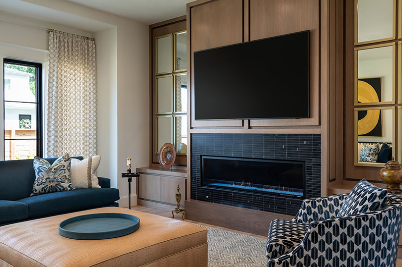 After Maryann and Steve had the lot cleared in August 2023, construction began and was completed in May 2025. Allied architect Nick Adams, co-principal of Mademan Design, was careful to include stylistic elements of nearby buildings, such as a chimney made of stone similar to the exterior of next-door Eliot Unitarian Universalist Chapel. “Our house also is deliberately the same height and building outline to mirror what we call the adjacent ‘sister house’ constructed by the same builder. We were very mindful of blending into the neighborhood,” Maryann says.