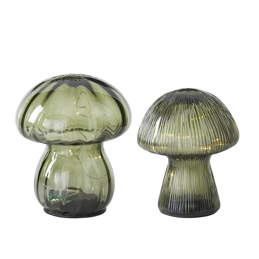 7. Green glass LED mushrooms, available at Blue Dahlia Designs