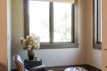 Open to the living/dining area, the spacious island kitchen — a 2016 Platinum award winner by Gegg Design & Cabinetry, featured in SLHL’s January issue — is the one notable departure from typical Wright floor plans. “Wright's designs didn’t focus on kitchens,” the husband quips. “In his era, kitchens weren’t as important as they are today, and he focused more on the dining rooms.” Nevertheless, this kitchen incorporates the same authentic Prairie-style design elements and natural materials as the rest of the home, with simple bronze hardware, granite surfaces, a hammered bronze range hood and minimalist oak cabinetry concealing the appliances and pantry entrance.