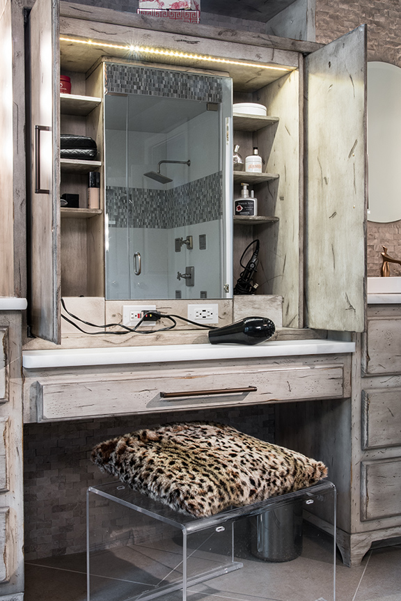 An outdated bath needed a head-to-toe redesign, and The Design Source was just the firm to update this luxurious space. Top priority to the homeowners was removing an expansive built-in tub and tub surround along with large columns. Adding an oversized steam shower, freestanding tub and double vanity with a highly functional custom makeup vanity and stunning glass-door cabinets complete the transformation.