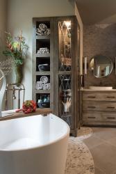 This doesn’t feel like a bathroom. It has such style. The storage cabinet is heaven! The bath has a custom feel, and the floorplan is fantastic.