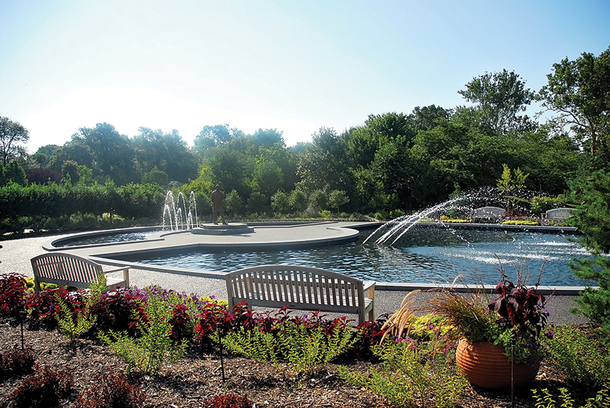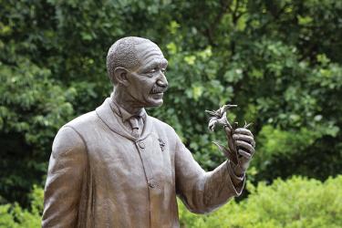This inspirational garden honors the life and accomplishments of the extraordinary scientist and native Missourian who greatly influenced 19th and 20th century agriculture and education. Carver revolutionized farming in the South by introducing plant diversity, crop rotation, natural fertilizers and conservation methods. By the end of his life, Carver was an internationally renowned figure, one of America’s greatest scientists, teachers, humanitarians and advocates for productive, sustainable agriculture. The Carver Garden was designed for peaceful contemplation and learning. The garden features a small amphitheater surrounding a life-size bronze statue of Dr. Carver, surrounded by a circular reflecting pool. Plantings of viburnums, hydrangeas and hollies provide a secluded, intimate feeling. The Carver Garden is intended to serve not only as a memorial, but also a learning laboratory for educators and students.
