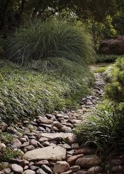 Before the work could truly begin, however, Jim needed to solve a drainage issue involving the property. “Steve used to get a lot of water through here,” says Jim, noting the high-to-low, east-to-west grade of the property. Following the natural contours of the land, Jim created a fairly elaborate, but natural looking, rock-lined drainage trench that he tweaked occasionally with boulders to keep the water flowing through a main channel. While utilitarian in purpose, the drainage system appears to be simply a rocky pathway through the rustic landscape, Steve happily notes.
