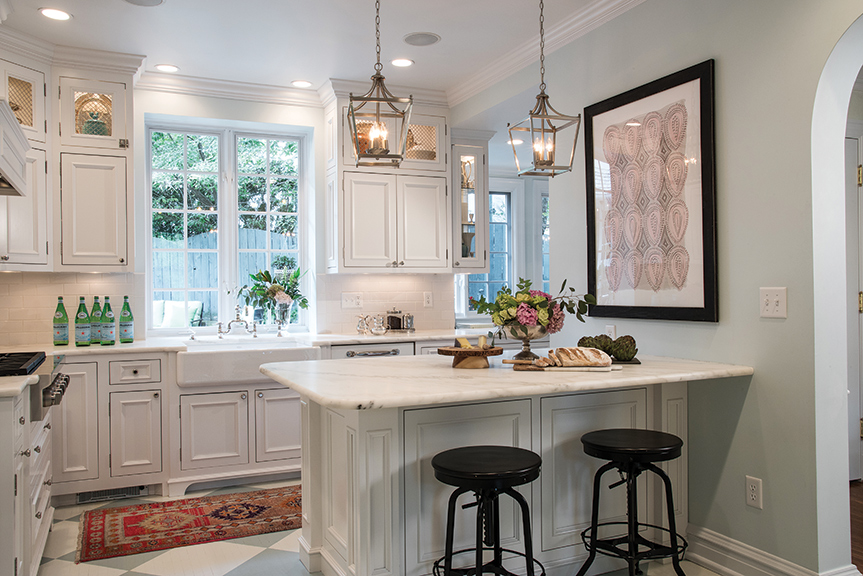 The Colonial Revival-styled residence changed hands several times over the next eight decades and was purchased by its current owners in 2009. The wife had grown up in the immediate neighborhood, and happy memories of this “urban oasis” had prompted the couple to start their family here several years before. They’d long admired the Merrell residence, with its detached carriage house, private setting and scenic views of the community park. And when a for-sale sign appeared in the front yard, they wasted no time acquiring the dignified 3,600-square-foot two-story.