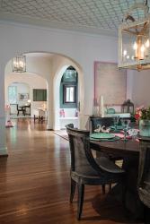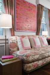 Demonstrating her flair for design, the owner personally selected the interior furnishings. A lush mix of color, pattern, new and repurposed pieces, family heirlooms, original artwork and framed handiworks by her children, all were chosen for their comfort, functionality and treasured memories.