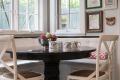“This seems like a ‘precious’ space, but it’s actually quite functional,” the owner remarks. She noted that all of the furniture is on casters, allowing for easy rearrangement, and indicated the fluted-leg farmhouse table and linen-upholstered bench positioned against one wall. “That’s where the kids often do their homework,” she explains. “It used to be our dining table, and we already had the bench, which happened to fit perfectly.”
