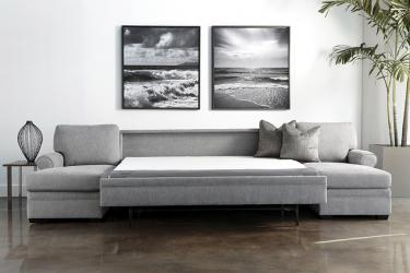 “Your traditional king-sized mattress is roughly 70-75” inches long, which makes it almost unusable for taller people. Quite a few inches are wasted just because of the bulk of the back of the couch,” Anzalone explains. “The American Leather king sleeper is 80” long; longer than most king-sized beds, even. It’s incredible.”