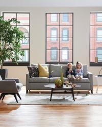 “Most sleepers have a conventional mattress that folds in thirds, and after, always holds the creases for poor comfort. With the Comfort Sleeper you will never experience [this]; each fold is hinged,” Anzalone demonstrates. The patented design slides out without incident, and each third of the mattress is attached to a solid-wood, fabric-covered platform. Gone are the exposed springs and single-ply mystery fabric. Gone are the questionable masses jutting at lower backs during midnight readjustment.
