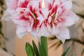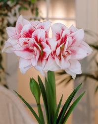 “You can expect many oohs and ahs from your gift recipients with Elvas Amaryllis. One of the most exquisite of intricately layered double forms, it's so beautiful it’s hard to believe it’s a live flower. This exotic beauty boasts glowing pinkish-white petals with deep-pink brush marks and whorled center petals.” Ann Lapides, Sugar Creek Gardens.