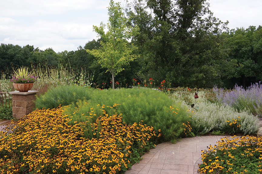 Not everything in the Harts’ garden grew like magic or was well behaved. Moles and voles gobbled up the bulb plants that were part of the initial planting. The structurally beautiful rattle snake master with 4-to-5-foot stalks of gray-green, thistle-like blossoms was so happy it seeded everywhere and eventually had to be removed altogether. As with any garden, the Harts’ landscape continues to be a work in progress. “It’s not as though this is an interior design where you can control everything,” Adam says with a laugh. “Designing gardens you have so many variables that are out of your control.”