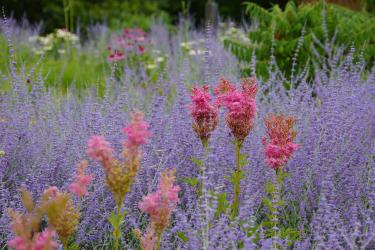 He also favors Joe Pye Weed, which grows 4 to 7 feet tall and sports dark green lance-shaped leaves and large clusters of tiny pinkish purple flowers with a vanilla scent that bloom from mid-summer to fall. Not only is the plant attractive to butterflies, the attractive seed heads persist through winter and provide multi-season garden interest, a factor that is important in designing a nature-friendly garden.