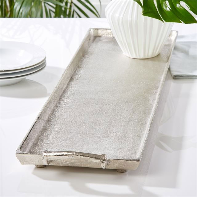 five: Long silver textured decorative tray, by TozaiHome, available at Savvy Surrounding Style.