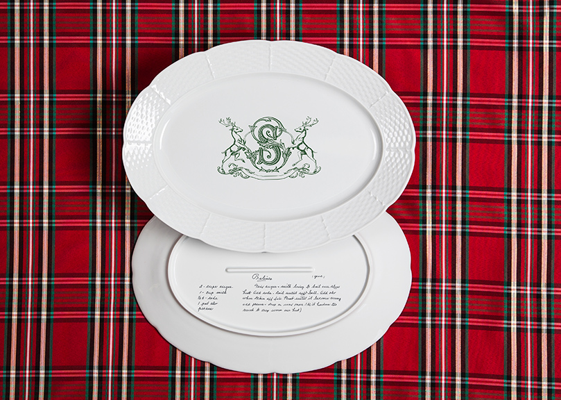 seven: Oval platter with holiday stag crest, available at Sasha Nicholas.