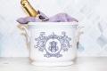 three: Champagne bucket with navy crest, available at Sasha Nicholas.