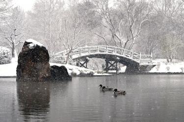 Don’t miss an opportunity to visit the Japanese Garden, where snow is considered a flower. In the winter, shapes and contrasts become the visual pleasures of the garden and you can even sometimes see colorful koi fish in the lake.