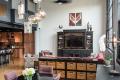 “My only real requirement was darker colors,” says Berges. “It’s an industrial building, so I wanted that kind of feel.” Word of mouth put him in contact with interior designer Nancy Barrett of Beautiful Rooms, who worked with Berges to integrate the design with existing furnishings and introduce elements that would make the space more attractive and functional. It’s in the roughly 900-square-foot open living room and dining area where that vibe really shines.