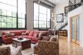 Suspended above the table is a eight-light fixture befitting of the generously sized room. It’s a far cry from the two glass pendants that hung there before, getting swallowed up by the high ceilings and open floor plan. “It felt too skimpy for the space, which is two-plus stories,” says Barrett, who had the area rewired to accommodate the extra lighting. The payoff is a warmer glow from lighting that’s scaled to its environment. In fact, everything about Kevin Berges’ living/dining area is warmer, even while staying true to its industrial roots.