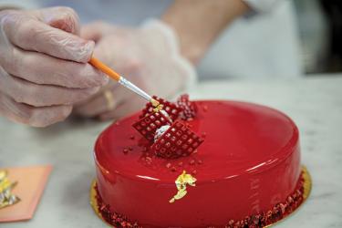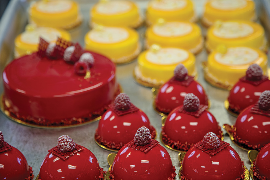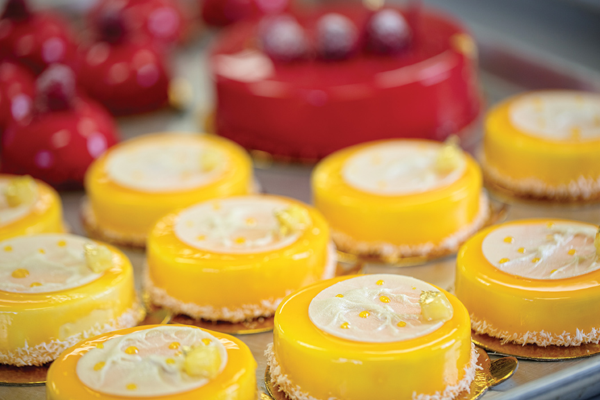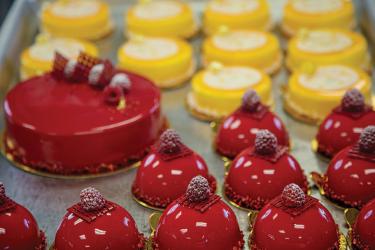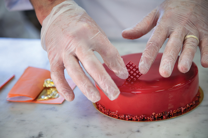 From there it's all about design. Reid makes it his goal to create upscale, memorable tarts, cakes, quiches and croissants that are dazzling, but not intimidating. A style that Reid describes as “sophisticated yet craveable.” He goes on to explain, “I want food that still looks like food, but in a sleek, fun way.”