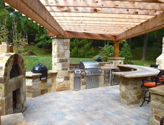 Bring the entire cooking experience outdoors with a well-equipped outdoor kitchen. Go all out with a grill, beverage center, pizza oven and more, or create an understated space with just a couple cooking essentials.
