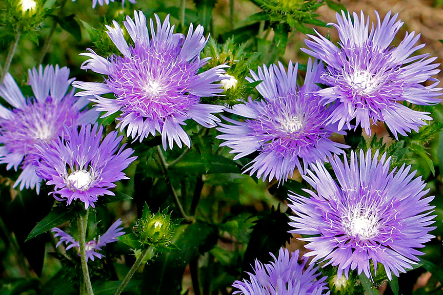 “Over the years I have asked many perennial gardeners what their favorite plant is. Blue Cornflower Aster, Stokesia, tops many gardeners' list. Enormous, periwinkle-blue 4" blooms adorn the garden for months. The prolific blooming begins in June with flowers continually appearing through August. One plant can product over 350 flowers! Gorgeous cut flower, long lived and easy to grow in sun.” Ann Lapides, Sugar Creek Gardens.