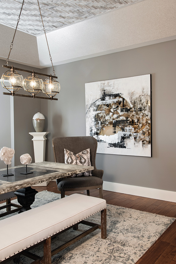 Kris Keller entered the design industry 33 years ago and founded her own firm, The Design Source, eight years later. She readily admits, “At first it was a job, then a career and now it’s my avocation. I feel we’re giving back to the world, supporting the well-being of the people whose lives we’ve touched.” And this 1980s-vintage reverse ranch in Creve Coeur is a prime example of how she interprets that philosophy.