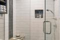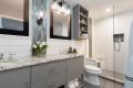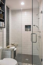 Why the judges love it: Handsome and classic, this space is functional for two young boys. The shelf on the bottom of the vanity is perfect for storage. The seamless glass in the shower makes the space feel bigger.
