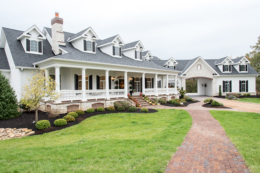 Conceptualized by CEO Brett Hardesty and in-house designer Steve Koskela, the residence combines the steeply pitched roof and dormers typical of Cape Cod styling with a columned Plantation porch that extends the full width. The floor plan is free-flowing, functional and well-suited to the family’s lifestyle, with five bedrooms and 7,600 square feet of space on the main and finished lower levels.