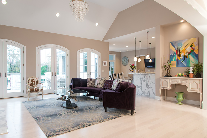 Beyond her roles as a mom, animal advocate and physical fitness instructor, the owner has a passion for interior design and readily admits to being “an HGTV addict.” Loving vivid color and a variety of styles, she’d assembled a thick notebook of décor ideas and established a neutral background palette for the new home, with wide-plank, light maple flooring and “Shabby Chic,” a warm taupe-y color, for the walls throughout.