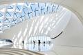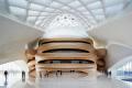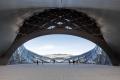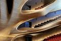 The Harbin Opera House was designed by MAD Architects to seamlessly blend with the surrounding nature and topography. On the exterior, the curvilinear façade is composed of smooth, white aluminum panels. The architectural mass wraps a large public plaza and, during winter months, melts into the snowy winter environment. Upon entering the grand lobby, visitors see large transparent glass walls spanning the grand lobby, visually connecting the curvilinear interior with the swooping façade and exterior plaza. Above, a crystalline glass curtain wall soars over the lobby space and is supported by a lightweight diagrid structure. The structure is comprised of glass pyramids and the surface alternates between smooth and faceted to mimic the snow and ice of the frigid climate. The grand theater is clad in rich wood.