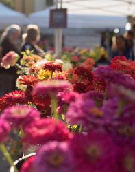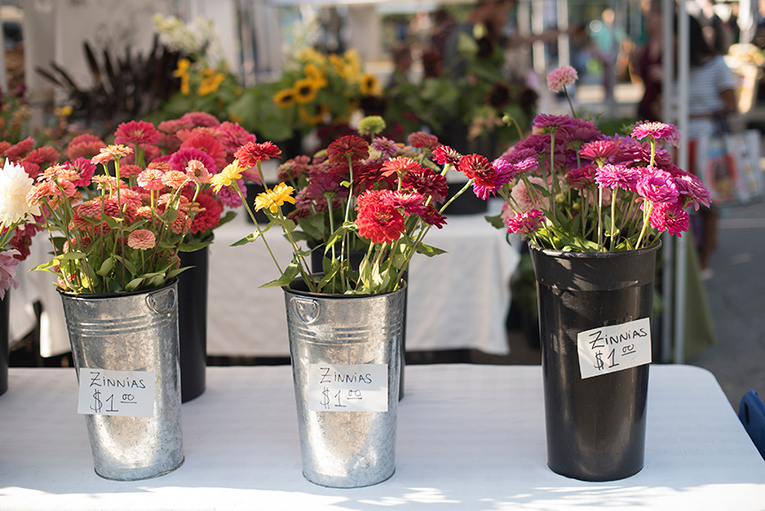 Their blossoms, harvested daily, go directly from richly amended soil to dinner centerpieces, bridal bouquets and end-table arrangements. Traditionally, local floral designers relied on blossoms packed in boxes and crates and shipped to St. Louis from hundreds, if not thousands, of miles away. Flowers from the nearby farms come in water-filled buckets directly from the grower and, unlike hothouse or tropically produced blossoms, are more likely to reflect the changing seasons. In addition Urban Buds: City Grown Flowers sells to the public each week at the Tower Grove Farmers Market. Flower Hill Farm blossoms are available at the Maplewood and Wildwood Farmers Markets and at monthly pick-your-own bouquet events, advertised on their website.
