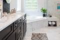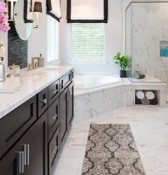 After a dozen or so years in her St. Louis home, Dawn Weinhardt, co-owner of Weinhardt Party Rentals, was ready to freshen up around the house, starting with an outdated master bath. A head-to-toe makeover in the summer of 2017 took the room from dim and dull to bright black and white. It’s now a modern gray-tone bathroom with a mix of just enough femme frill and mild machismo to make the space a haven for just about anyone seeking a quiet retreat.