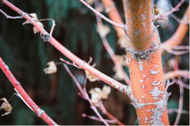 two: “The Winter Orange Japanese Maple stands out from many other deciduous trees by being able to provide year-round interest. Foliage goes from orange in the spring to lime green with orange margins for the summer to orange again in the fall. However, your landscape keeps a pop of color as the orange lives on in the bark once the leaves drop.” Andria Graeler, Chesterfield Valley Nursery.