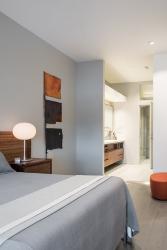 Take, for example, the 2-foot glass panels abutting the condo’s ceiling: Lamb installed them to “lower” the original 10-foot roofline (just visually, not physically), adding a unique contemporary design element in the process.