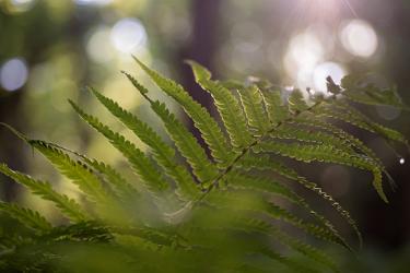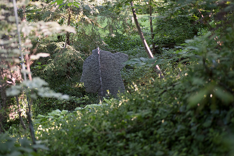 A massive field of willowy, graceful ostrich ferns adds another dimension to the garden. Rippling in the slightest breeze, they add movement and a soft texture to the shady space.