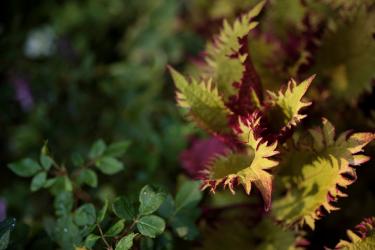 Dwarf Japanese maples add multi-season architectural interest and soft green color and texture. The addition of burning bush to the landscape provides dramatic pops of phosphorescent red in fall.