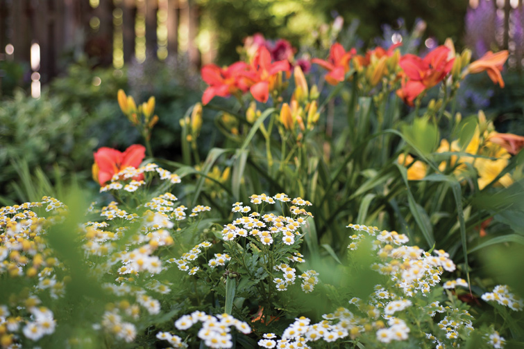 In recent years, Carol has delved more into native plants. "They are beautiful, and they require less water. They're tough because they have evolved along with the climate. Our front yard now is almost all natives, although I'm not a purist. I am trying to work on plants for pollinators. We avoid pesticides." While the Gravenses' garden focuses on flowering shrubs, perennials and annuals, they share a vegetable garden with their next-door neighbor.