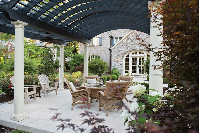 In addition to the plans in and around the yard, Frisella worked with Stern to add life around a new pergola built by Higginbotham Custom Homes & Renovation and designed by Tao + Lee, the St. Louis-based design firm Stern swears by. Bushy greenery and colorful perennials accentuate the structure, which grounds the space while drawing the eye upward to rounded beams and soft angles. Though it doesn’t replace the elm tree, it shifts the focus and creates a new center to observe and enjoy. “It actually provides a lot of shade, and during the summer we eat most meals under the pergola,” Stern says. “I love sitting out there and looking at the garden.”
