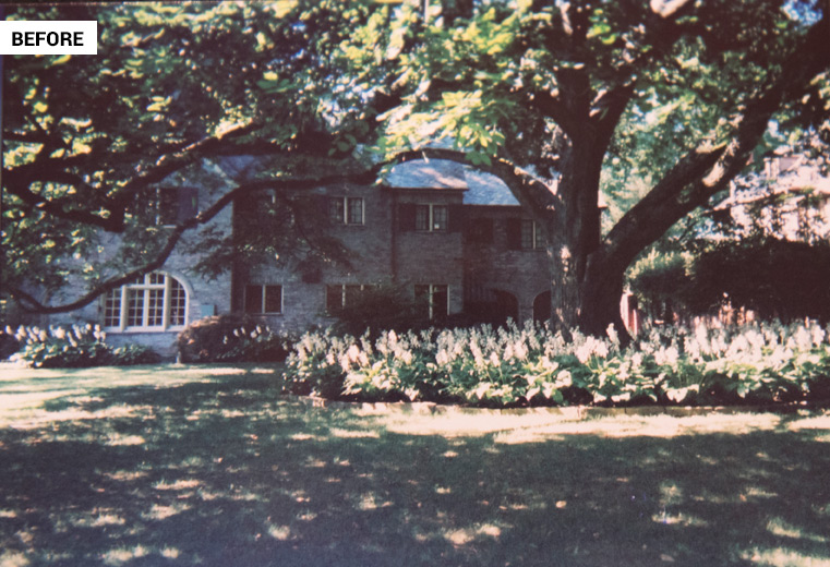Past-tense framing aside, you can guess what happens next. In 2012, the old elm began to fall apart and die. Within weeks, the hostas did too. “We had to start over again, and find a company to design a new landscape for us. That’s when we picked Frisella,” she says.