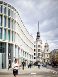 Started in 2013 and completed in 2015, New Ludgate sits on a site filled with history, both real and fictional. The Belle Sauvage coaching inn was not only a common place for travellers to stay and visit, it also became a common site in famous author Charles Dickens’s novels; the inn hosted both Pocahontas and the first live rhinoceros to ever visit London. After World War II, the inn fell into disrepair. The site of One and Two New Ludgate was formerly used for '80s-style office buildings and offered little accessibility or beauty to the public. For the new projects, the space was split into two office buildings to create an outdoor space to revamp the history of the Belle Sauvage route, which had disappeared. The designs made by Fletcher-Priest Architects reinstated and improved the public realm of the entire area and brought a modern addition to the city of London. Not only did they recreate the old pedestrian route, but they also added a piazza to gather lunchtime sunlight for tired passersby and hungry office workers. Each building is comprised of nine stories for office space plus the ground floors, which boast retail shops and bars. These stores sit under milky glass awnings, providing sunlight all day. A terrace on the south-facing roof overlooks St. Paul's Cathedral and the surrounding city of London.