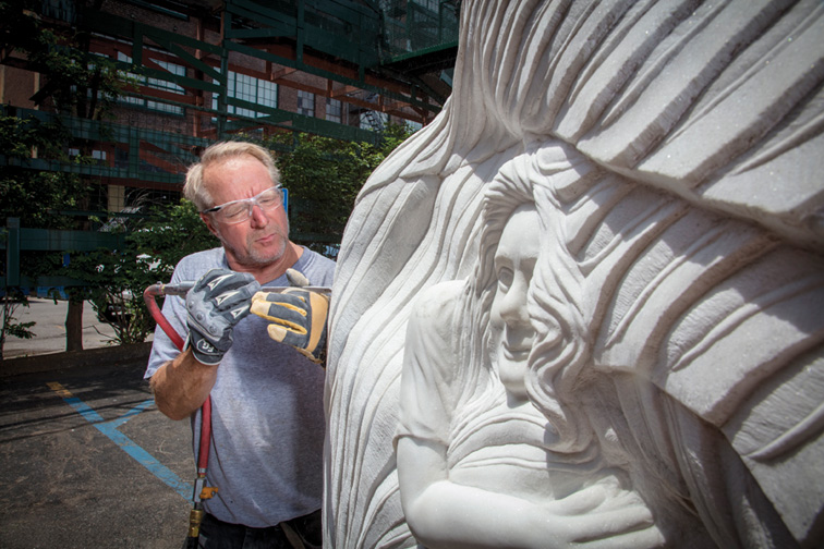 On any given weekend at the City Museum, there's a good chance you'll spot sculptor Paul Bayer carving away on his dream project before you even walk in the door. An astounding 20 ton, 6'x6'x7'block of solid white marble, Bayer describes the piece as “probably my biggest achievement.” He continues, “It's a reminder to protect creativity for the children and the child in all of us so we can do things like creating something that's cool that we can all be a part of just like the City Museum itself.”