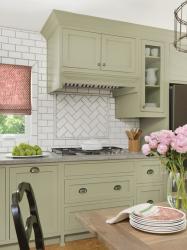 When it was time for the fun part, Spear heated things up with modern farmhouse elements and environmentally friendly touches, including a trash rollout with compartments for recycling and compost. Speaking of functional, Spear custom-designed the muted green cabinetry, using “every inch,” she says, to accommodate an abundance of gadgets, from a Vitamix blender down to tea infusers and reusable water bottles.