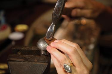 Metalsmiths are artisans who create pieces out of various metals including (but not limited to) gold, copper and silver. Peg is most well-known in St. Louis for her jewelry, her style defined by a combination of gritty steel and delicate gold accents. These materials come together to create the bare-necessities aesthetic that makes her work stand out from the rest.