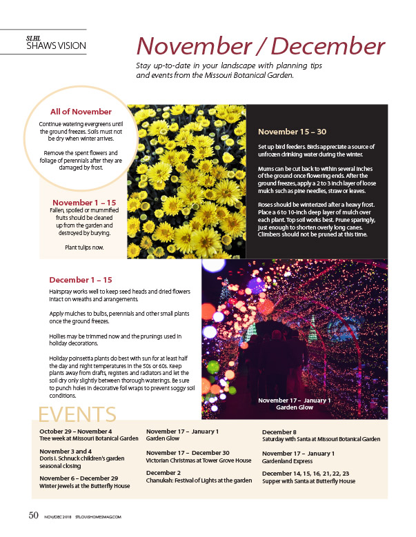 Apply mulches to bulbs, perennials and other small plants once the ground freezes.