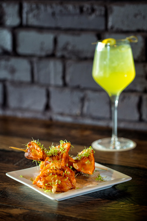 Another savory dish, Mediterranean lamb potstickers, starts with a parsley-and-fennel dough stuffed with spiced lamb and finished with cucumber tzatziki and dill microgreens. Desserts might include an “apple pie” dumpling with cinnamon dough, apple filling and bourbon caramel, or the Cherry Blossom, which is made with mascarpone cheese and cherry inside almond dough and finished with white tea citrus glaze and toasted pistachios.